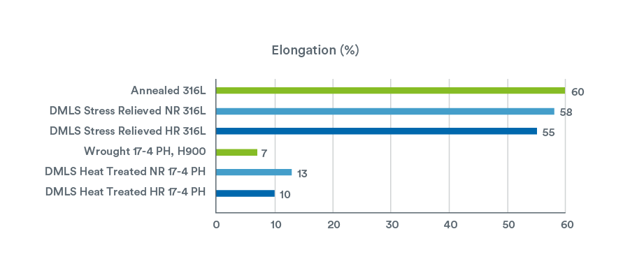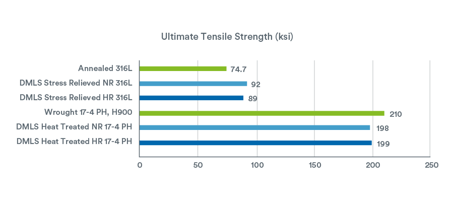 Note that DMLS 17-4 PH and 316L share comparable mechanical and physical properties to their non-AM wrought counterparts.