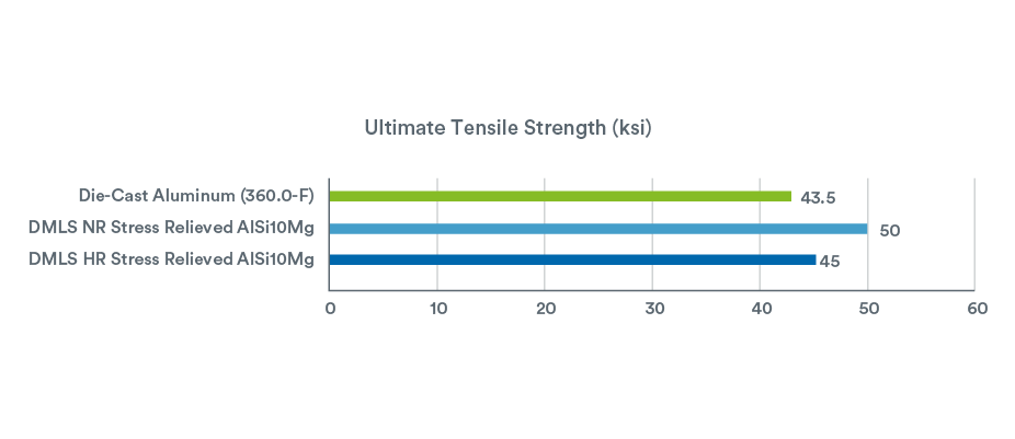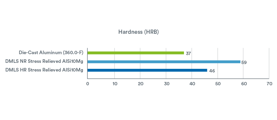 | DMLS NR AlSi10Mg | Stress Relieved | 50 ksi | 59 HRB |