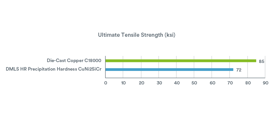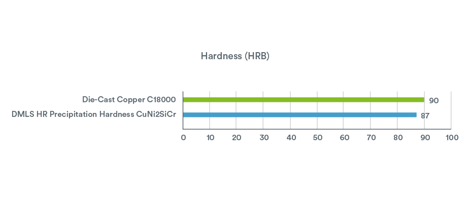 | DMLS HR CuNi2SiCr | Precipitation Hardness | 72 ksi | 87 HRB |