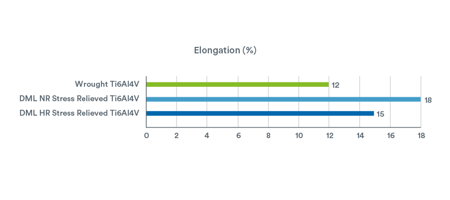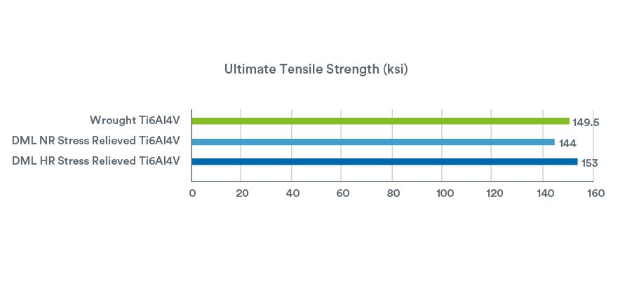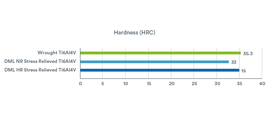 | DMLS HR Ti6Al4V | Stress Relieved | 153 ksi | 15 HRC | 15% |