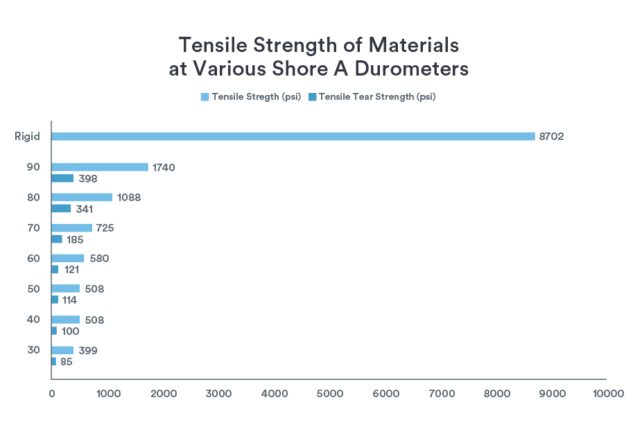 | Shore A Durometer | Tensile Strength | Tensile Tear Strength | Elongation |